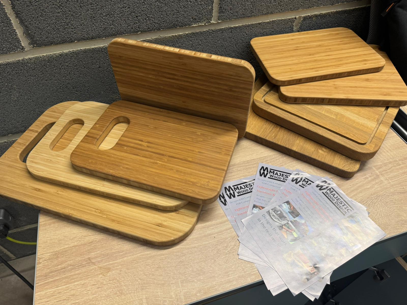 Solid Oak or Bamboo chopping boards in a range of shapes and sizes, contact us with your choice. P&P included.